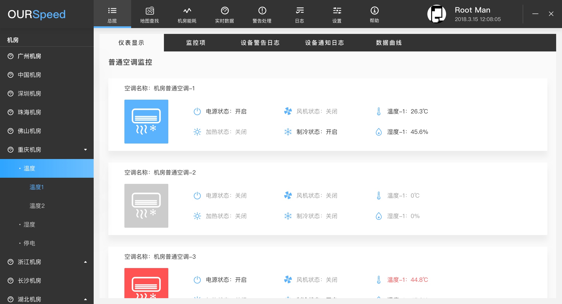 監(jiān)測實現:由于普通空調不具有智能接口,因此要加裝空調控制器,通過控制器的 RS485 智能接口采用總線的方式將信號接入監(jiān)控主機的串口,監(jiān)控平臺軟件實現對普通空調開關機控制和運行狀態(tài)的實時監(jiān)測。