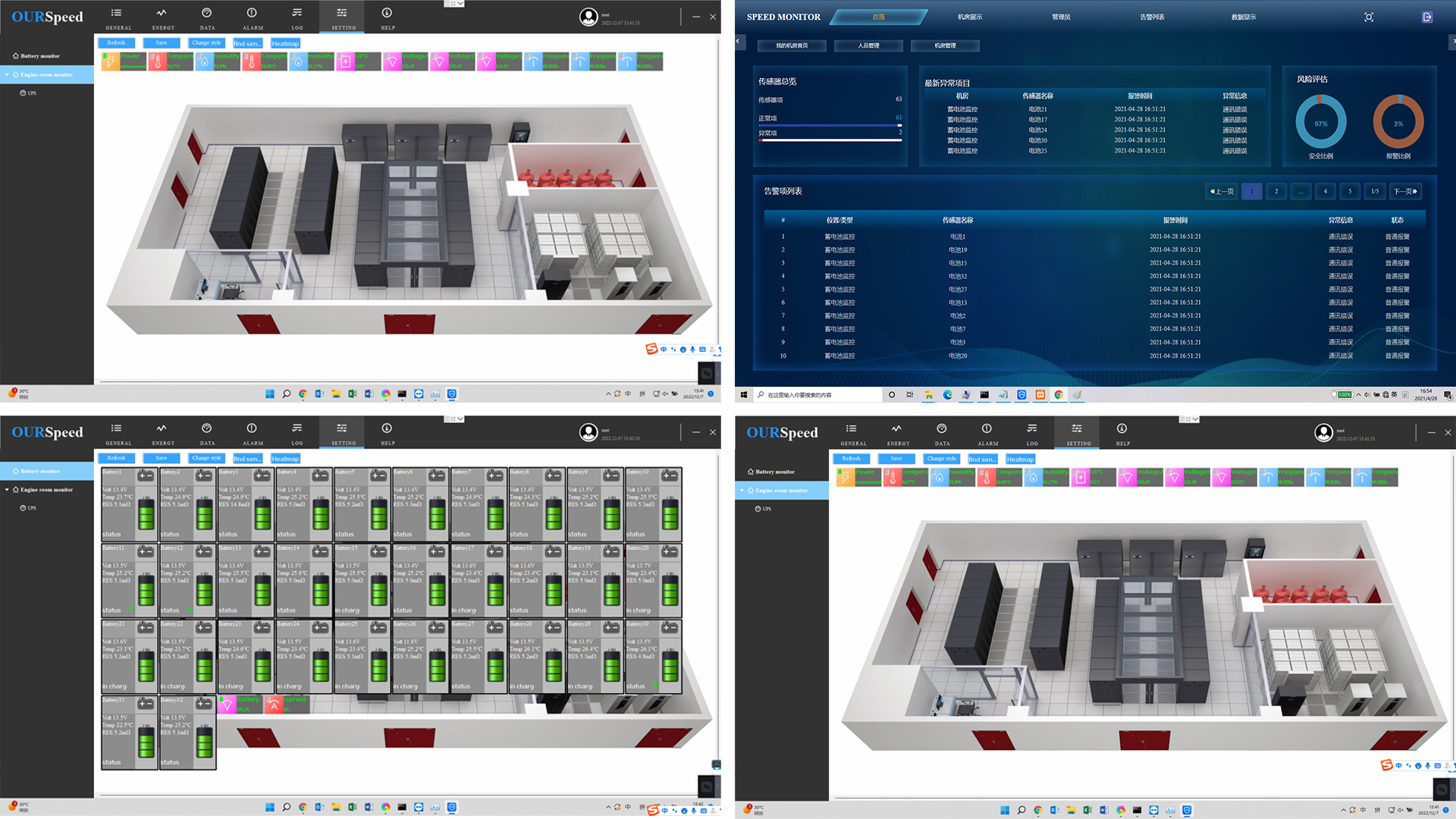 實現(xiàn)功能:實時監(jiān)測每節(jié)蓄電池組的單體電壓、 內(nèi)阻、表面溫度、組電壓參數(shù),一旦蓄電池發(fā)生故障,系統(tǒng)將發(fā)生報警,同時產(chǎn)生報警事件進行記錄存儲并有相應的處理提示,并第一時間發(fā)出電話撥號、APP、微信、手機短信、現(xiàn)場聲光等對外報警。