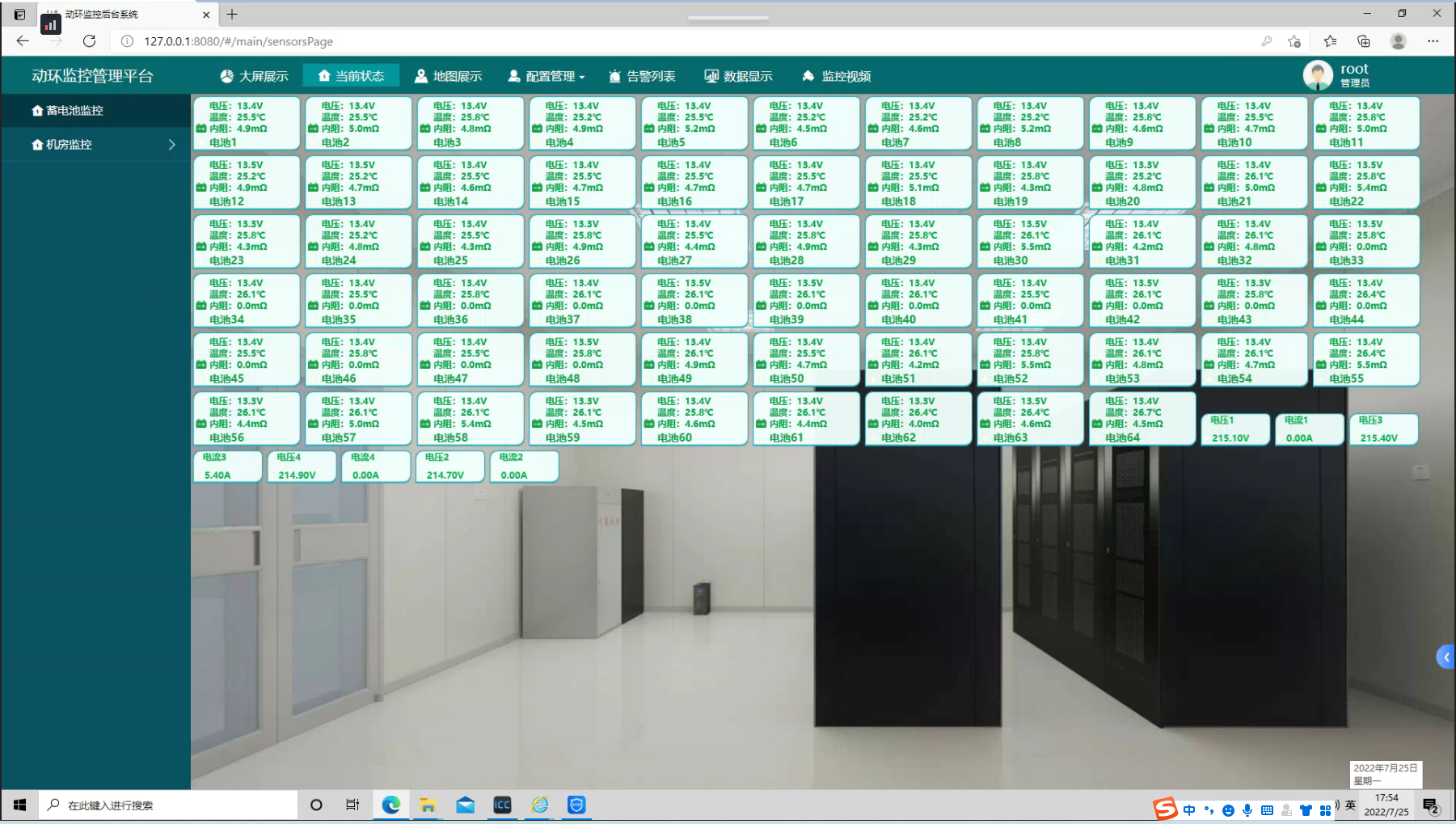 監(jiān)控內(nèi)容:對機房內(nèi)每節(jié)蓄電池的電壓、內(nèi)阻、表面溫度等參數(shù)進行實時監(jiān)測,一旦發(fā)生故障通過監(jiān)控平臺發(fā)出對外報警。